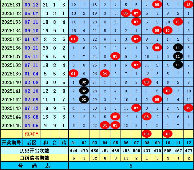 后区分析:在第146期历史同期开奖中,后区奖号奇偶比为18:14,最近5年同期后区奇偶走势为:一奇一偶、全奇、全奇、一奇一偶、一奇一偶,今年同期看好偶数号码大热,关注号码08、10。