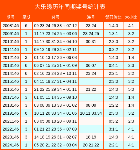 大小比分析:历年同期的奖号大小比为46:34,整体来看大数走势较热,去年同期的奖号大小比为4:1,本期预测大小比为3:2。