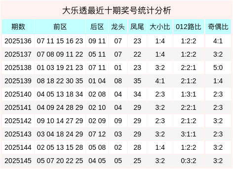 前区大小比为3:2,奇偶比为3:2,三区比为2:2:1,后区奖号形态为【小数+小数】、【偶数+奇数】。