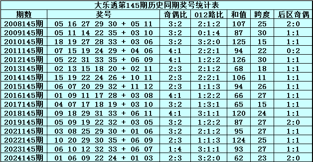 水镜体彩大乐透第2025145期历史同期奖号分析: