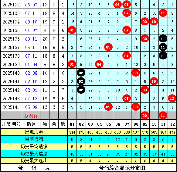 其中,后区奇偶比为16:24,大小比为21:19,012路比为7:18:15,本期后区金胆参考09。