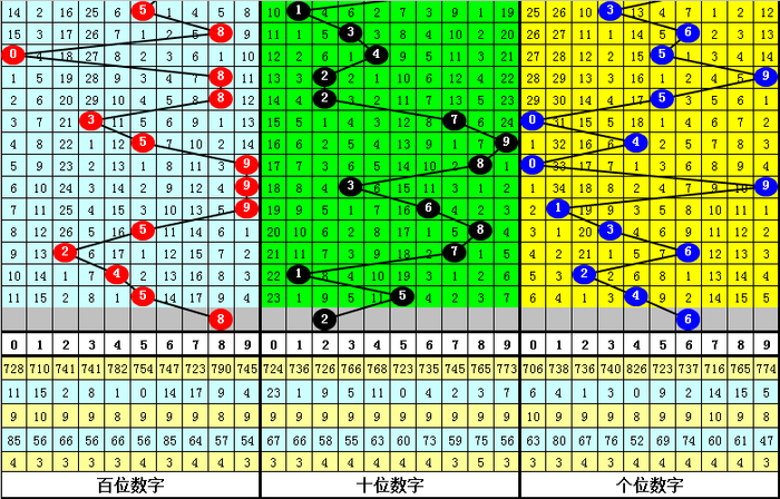 百位分析:该位上期开出号码5,最近10期该位012路比为4:1:5,其中2路号码间隔1期再次出现,本期该位防2路号码再次出现,参考号码8。