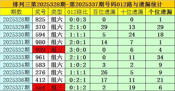 开奖回顾:排列三第2025337期奖号为:554,类型为组三,号码012路比为0:1:2,百十个位号码直选分别遗漏2期、19期和6期。