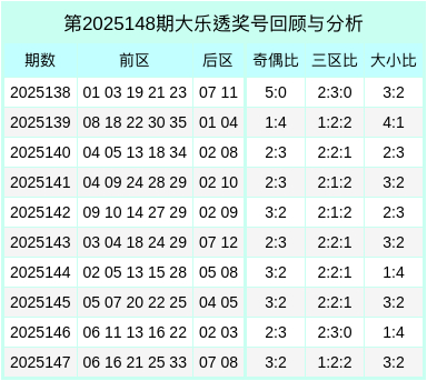 大乐透第2025148期综合推荐: