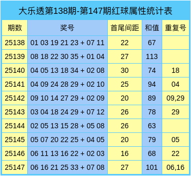 第25148期大乐透特征数据统计分析
