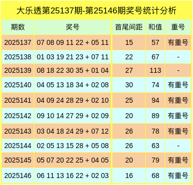 上期开奖:大乐透第2025146期奖号为:06、11、13、16、22 + 02、03。