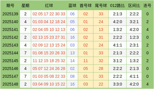 上期回顾:双色球2025148期开出奖号:红球03、04、09、10、15、22,蓝球16。