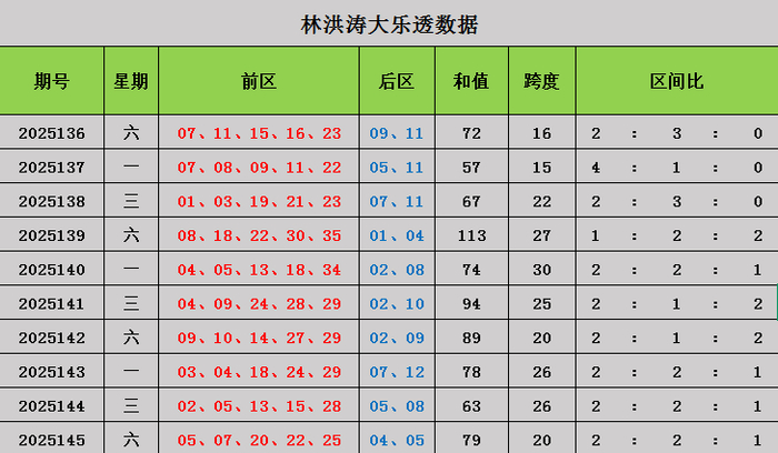 147期林洪涛大乐透预测奖号:跨度分析