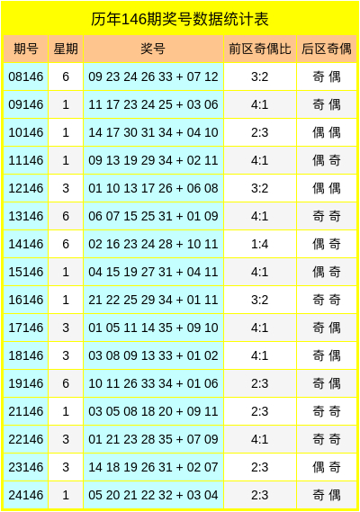 后区二球:在历史第146期同期开奖中,后区二球的奇偶比为8:8,最近5年后区二球奇偶走势为:偶数、奇数、奇数、奇数、偶数,今年预计后区二球开出偶数号码,参考后区二球为08。
