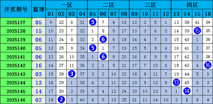蓝球分析:蓝球上期开出小偶数号码02,前十期蓝球大小比4:6,奇偶比5:5,本期预计小数号码热出,蓝球推荐一码05。