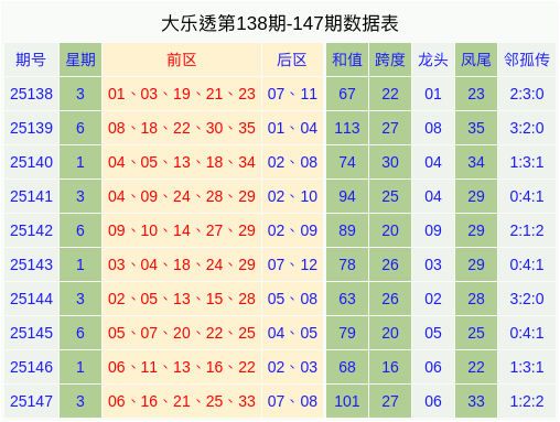 上期回顾:大乐透25147期开出奖号:前区06、16、21、25、33,后区 07、08。