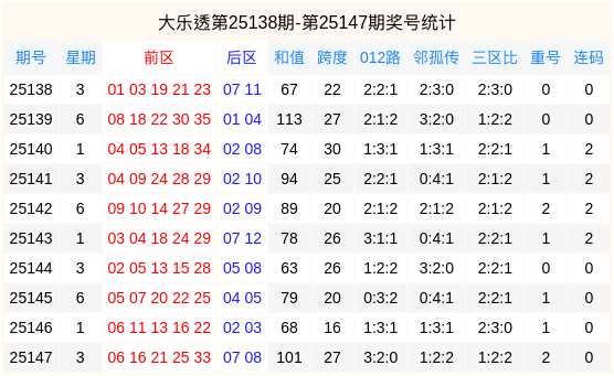 开奖回顾:大乐透第25147期开出奖号,前区06、16、21、25、33,后区07、08。