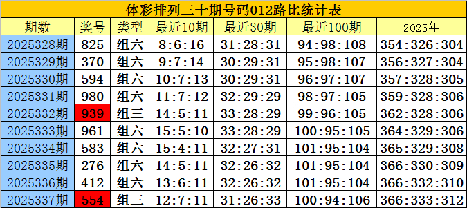 开奖回顾:排列三第2025337期奖号为:554,号码012路比为0:1:2。