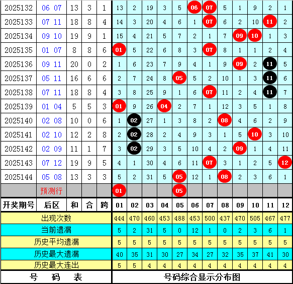 和值跨度:上期和值开出63,对比第2025143期和值下降了15个点位,本期看好和值走小,关注小 号区域和值,预计在82附近。