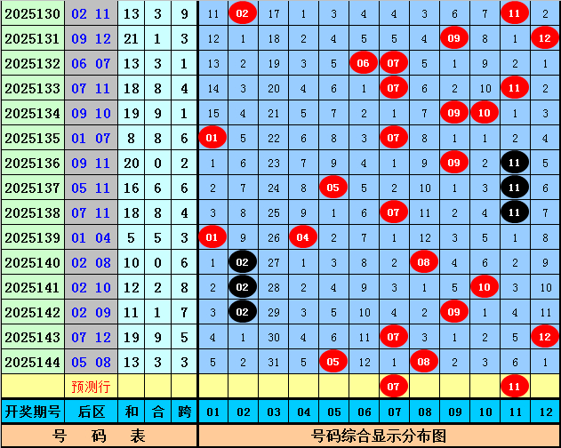 后区奖号分析:上期后区奖号为05+08,遗漏期数为6期和3期,目前后区号码01-12分别遗漏:5期、2期、31期、5期、0期、12期、1期、0期、2期、3期、6期、1期,本期后区注意号码02、03、05、07、11,两码关注07、11。