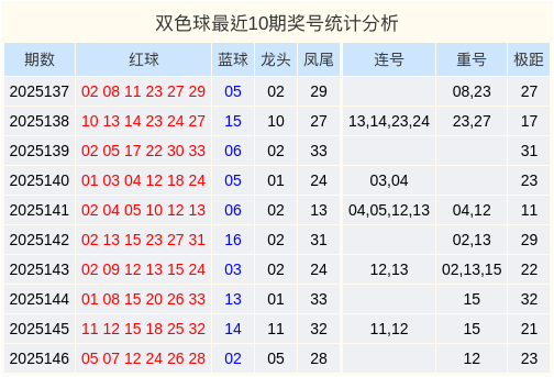 开奖回顾:双色球第2025146期奖号为:05、07、12、24、26、28 + 02。