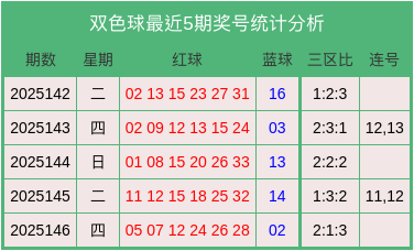 红球六号位:根据最近5期数据分析,红球六号位奇偶比为2:3。根据上期数据分析,红球号码开出28,为偶数。本期预计推荐奇数号码:33。