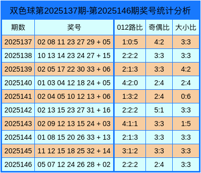 上期回顾:双色球2025146开奖号码为:05、07、12、24、26、28 + 02。