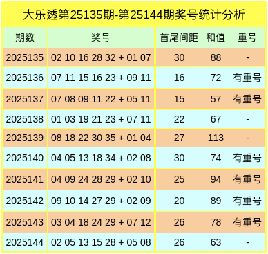 大乐透近十期奖号数据统计