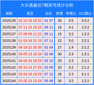 大乐透近7期奖号数据统计图表