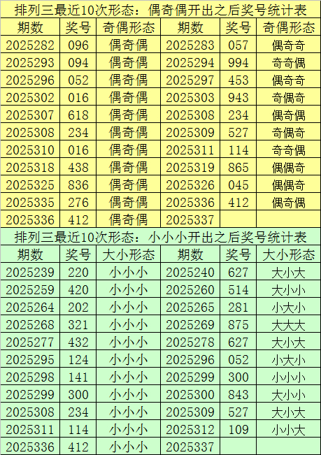 开奖回顾:体彩排列三第2025336期开出奖号:412。奖号基本特征为: