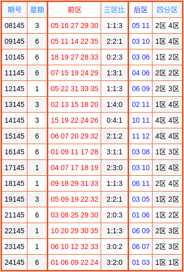 大乐透历年第145期奖号三区详细数据