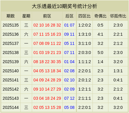后区分析:上期开出“小+大”、“奇+偶”的奖号:05、08,近10期后区的大小比为12:8,奇偶比为12:8,本期关注开出小+大、偶+奇的形态号码:06,07。