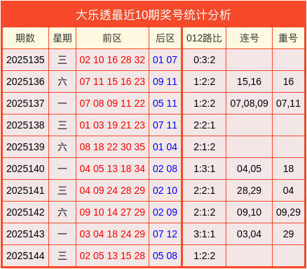 上期回顾:大乐透2025144期开出奖号:前区02、05、13、15、28,后区05、08。