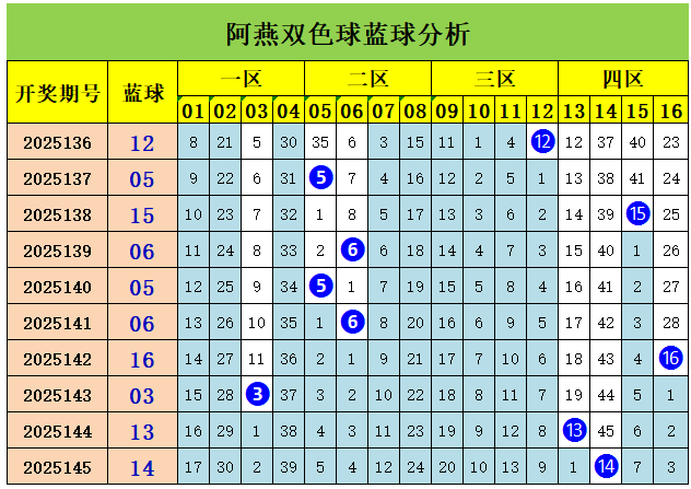 146期阿燕双色球预测奖号:蓝球分析